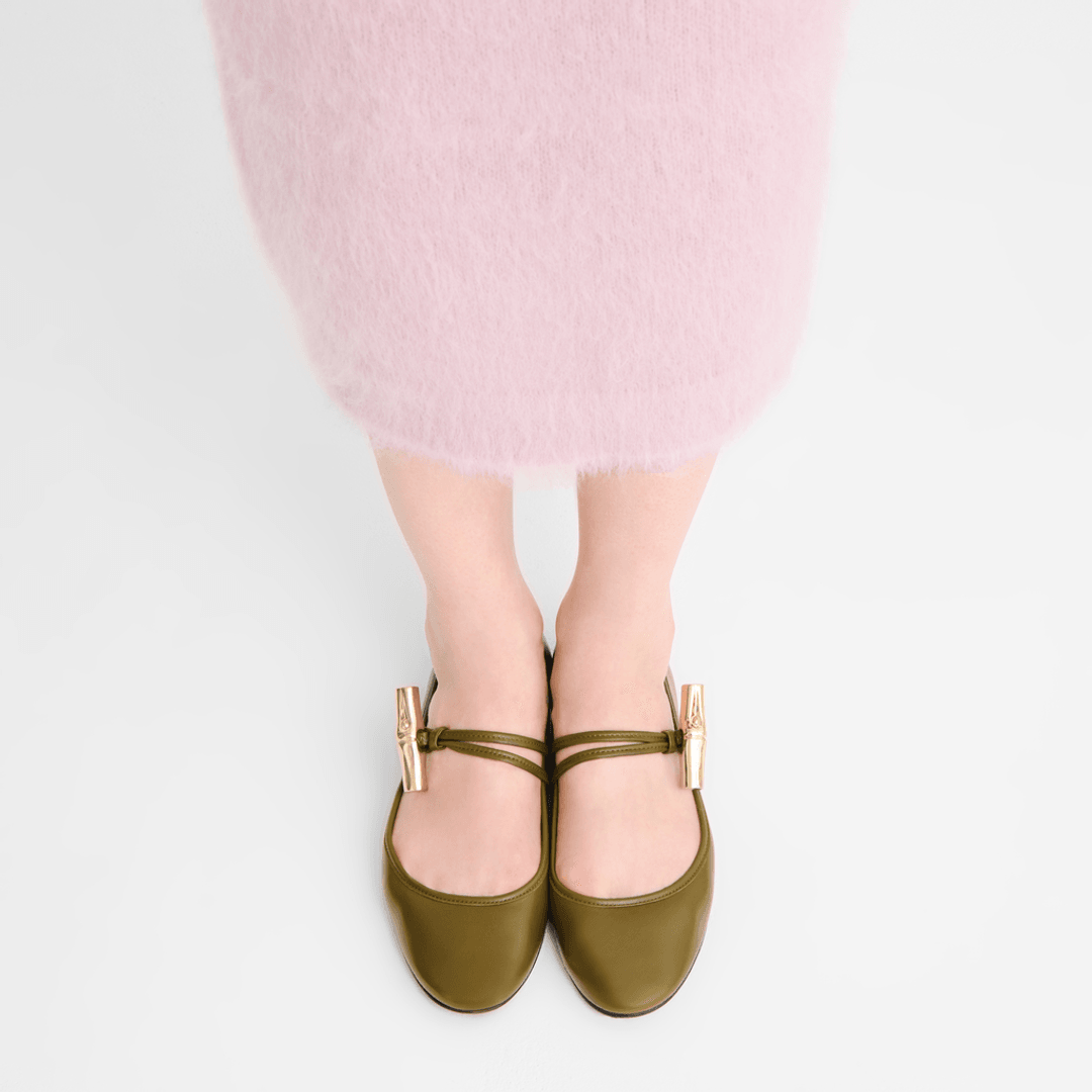Longchamp Le Roseau Baleríny Olivové - Kůže