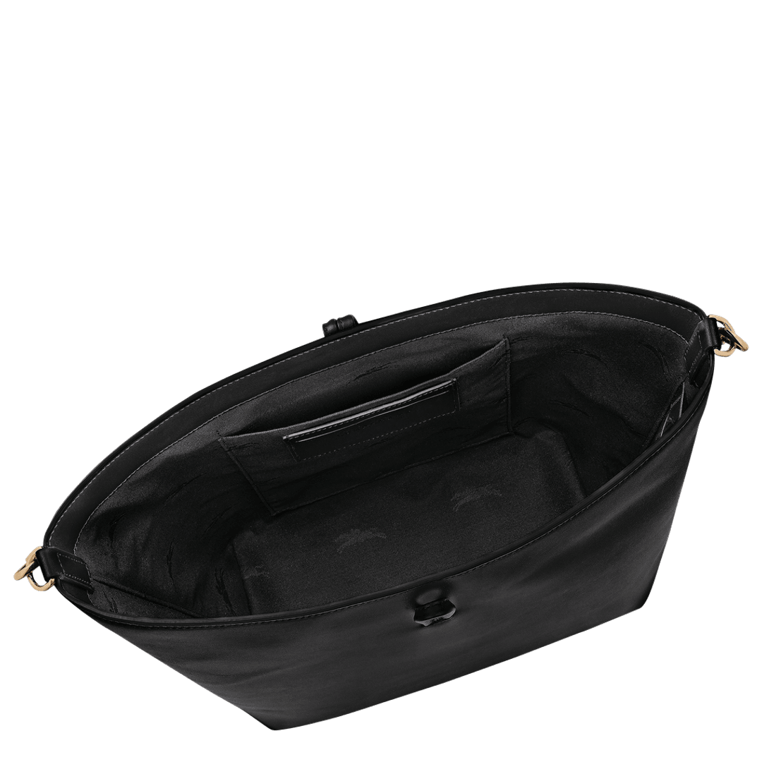 Longchamp Le Roseau M Tas Hobo Hitam - Kulit