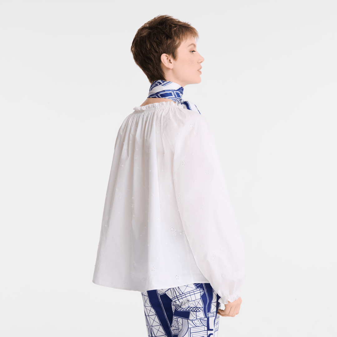 Longchamp Bluzka Biała - Popelina Haftowana internetowy polska